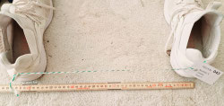 Die Schuhe binden sie mit einer 40 cm langen Paketschnur zusammen, und beschriften sie ebenfalls mit der richtigen Grösse und dem Preis in ganzen Franken.